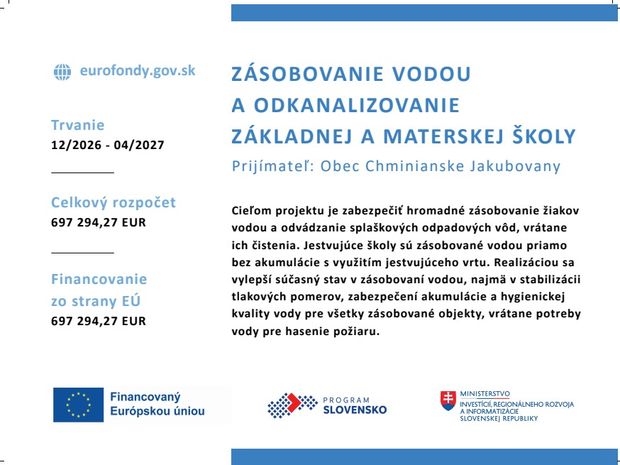 Cieľom projektu je zabezpečiť hromadné zásobovanie žiakov vodou a odvádzanie splaškových odpadových vôd, vrátane ich čistenia. Jestvujúce školy sú zásobované vodou priamo bez akumulácie s využitím jestvujúceho vrtu. Realizáciou sa vylepší súčasný stav v zásobovaní vodou, najmä v stabilizácii tlakových pomerov, zabezpečení akumulácie a hygienickej kvality vody pre všetky zásobované objekty, vrátane potreby vody pre hasenie požiaru.
